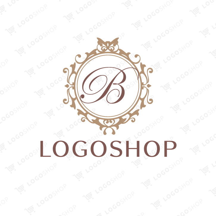 丸にオールエレガント飾りB|アルファベット・B・花・植物・飾り・きれい・女性的・高級感・ゴージャス・エレガント・おしゃれ・美容・サロン・クリニック・健康・医療・医院・病院・歯科・介護福祉・ショップ・店舗